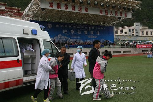 演練現場,工作人員在北門廣場搭起了學校醫務室、學校食堂、縣醫院、留樣柜、農貿市場、應急指揮部等情景模擬臺,3名身穿校服的孩子坐在“校醫務室”,有的捂著肚子,有的托著腦袋,表情“痛苦”,正焦急地等待“救援”。演練過程中,學校緊急啟動學校食品安全事故應急預案,第一時間將發病學生送往醫院,并通知學生家長。同時向縣教育局、縣食品藥品監督管理局報告。相關職能部門獲知該信息后,迅速趕赴現場,成立應急指揮中心。在指揮部的統一協調指揮下,康定縣食品安全委員會成員單位領導及食品安全辦成員按照職責分工,分別組織開展應急救援和事故調查處置等工作。事故調查處置貫穿醫療救治、生產加工、市場流通、餐飲等重要食品監管環節。由于指揮得當,措施得力,處置及時,有效控制了“中毒事件”的蔓延和擴大。應急演練達到了預期效果。
