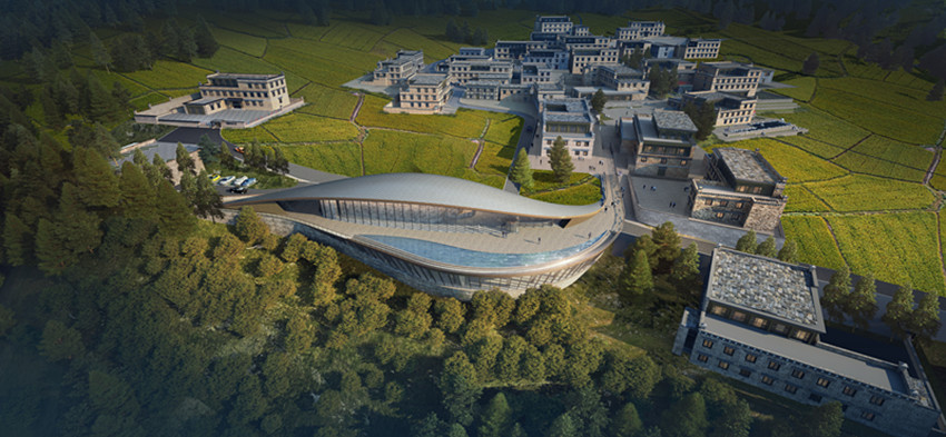 此外,在建造方式上香巴拉文化博物館基座外墻使用本地民居修建用的石材、木材,觀景大窗運用現代幕墻技術,屋頂采用金屬板材料。在功能布局上分為源遠流長香巴拉、香巴拉并不遙遠、永遠的香巴拉三個部分,展示本地自然與人文多樣性與獨特性。