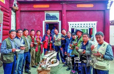 創作采風期間,北部高原帶著泥土芬芳的生活深深地陶醉了隊員們,不知不覺,大家都成了早起晚歸,不辭艱辛的攝影人。每天早上4、5點起床是常事,夜幕四圍才吃晚飯更是習慣。團結、協作、樂于助人成為一種自覺的風氣:60多歲的趙文光老師退休前曾任過康定縣宗教局和縣政法委領導,他成為采風隊最好的藏語翻譯;身板硬朗的他還被稱為“能攆獐子”的人。隊員辛沂外出拍照的時間最多,走的地方也很多,外出經驗豐富,他精心準備的常用藥品熱心幫助了許多人。唐保安老師工作時常到農村牧區調研,日積月累的基層生活知識成了采風中不可多得的向導。被譽為攝影后期制作高手的胡庭輝每天義務為隊友考貝蓄存卡,講解攝影知識。王明陽、游建中更是身體力行地作表率,吃苦在前,當向導定拍攝點,心甘情愿地為隊友們服務。在宗塔草原民居接待站,高齡的代奇元老師和游建中不顧外出拍攝的勞累,主動熱心地親自下廚,為隊友們做出可口的飯菜。13日上午,藍色中巴在海拔3600公尺的老折山爆胎,州攝協主席,也是這次帶隊的郭昌平身先士卒,帶領會修車的胡庭輝、黃元康等不顧高山缺氧,積極幫司機換輪胎。離開宗塔草原最后一晚,原本安排此行唯一一次早上8點起床,讓隊員們好好休息一個早上,沒想到不到早上6點,全體隊員無一遺漏地都起床追光逐影拍照去了。來自四川民族學院的黃元康外出拍照返回,還忙著幫中巴車李師傅擦洗車廂。李師傅在創作采風期間也深受感染,這天也沒在床上呆住。他對筆者說:這段時間和你們早晚相處,才知道攝影創作有多辛苦,你們的吃苦耐勞精神不得不讓人佩服。我今早上也睡不著呀,起來擦洗車廂,也想讓你們路途中乘坐得舒服一點……