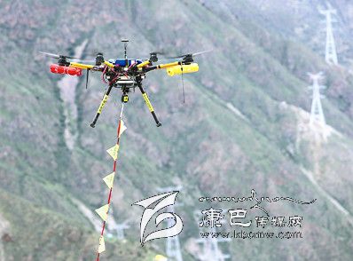 為應對復雜地形和氣候環境,四川送變電公司使用了由四川電力應急中心自主組裝的高科技“法寶”——八旋翼飛行器。