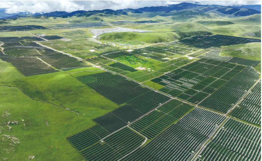 沉寂千年的高原被建設者喚醒。創造綠色價值,綠能持續釋放。2017年6月,國家電投建成甘孜州南部首個光伏電站——5萬千瓦正斗二期光伏電站;2018年6月,建成“集中開發、收益共享”的異地扶貧電站——8萬千瓦新那伽光伏電站,是甘孜涉藏地區扶貧規模最大、扶貧人口最多的高山光伏扶貧項目。2022年10月,建成造價超同期普通電站12%的全球首個超高海拔光伏實證基地——60萬千瓦興川實證光伏電站,公司榮獲“超高海拔光伏實證實驗室”“四川省能源電力保供突出貢獻集體”“甘孜州清潔能源開發先進企業”等榮譽稱號及鄉城縣政府書面表彰。