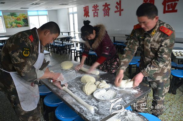 時值大暑季節的川西高原依然寒風凜冽,一抹朝陽灑在山頂積雪上,散發出黃白相間耀眼的光芒。此時,工化中隊廚房里鍋碗瓢盆開始演奏新一天的樂章,幾名炊事員忙來忙去,只見中隊長杜培峰的妻子李曉霞正蹲在門口幫著洗菜,“小杜跟我說中隊的炊事員最辛苦,讓這些小伙子炒菜做飯,真是難為他們了……”,四川妹子李曉霞用手擦了擦額頭的汗珠對筆者說。正說著,炊事班長跑過來一把端走李曉霞面前的菜盆:“嫂子,你這么早起來瞎忙活什么啊?你感冒還沒好呢,快回去休息吧!”
