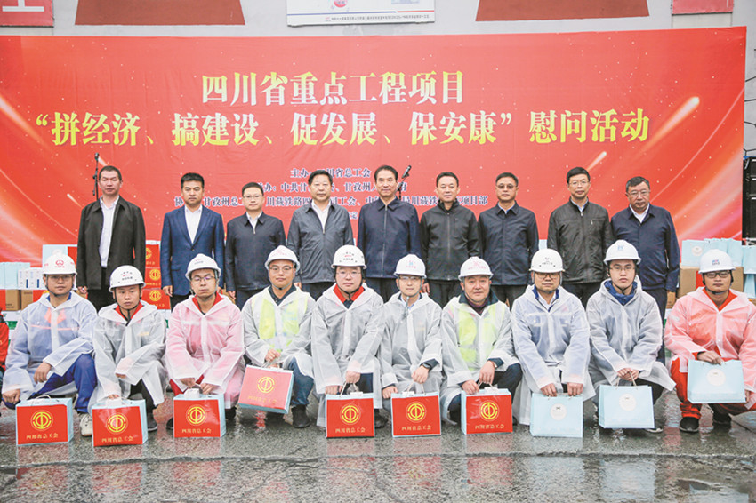 省委常委、統戰部長趙俊民(左五),州委書記沈陽(右四)等領導赴甘孜州重點工程項目開展“拼經濟、促發展、保安康”慰問活動。