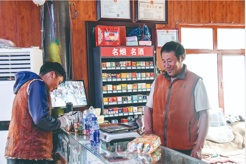 小小的沐恩超市不僅提升了群眾的幸福指數,而且通過設立公益性崗位切實增強了群眾的獲得感。在村民的集體討論、決定下,村民呷嘎被推選為超市收銀員?!艾F在能在家門口上班,每月拿到手的工資也不低,感謝大家推選我為超市收銀員,我一定認真負責,更好地為大家服務?!边雀抡f。據了解,甘孜縣人武部先后在產業發展、鄉村振興、美麗鄉村建設等領域為該村實施了4個幫扶項目。同時,按照“干什么就學什么、缺什么就補什么”原則,定期到鄉鎮開展干部培訓、支部共建共創。正如其名,沐恩超市的“沐恩”二字寓意潤澤和恩惠,它既是當地“鑄牢中華民族共同體意識 民族團結進家庭”實踐行動的務實舉措,也是弘揚愛國擁軍傳統,攜手共建美好家園的具體實踐,在賡續紅色血脈、凝聚團結正能量中繪就了“民族大團結,軍民一家親”的和美篇章。
