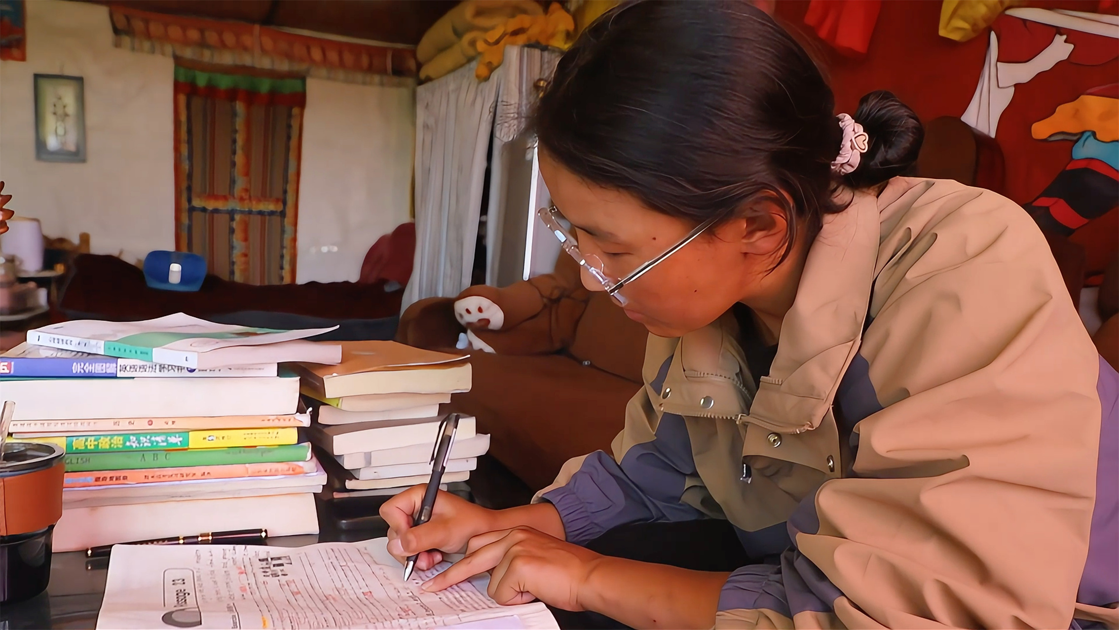 扎西拉姆作為家中的老四,從小便展現出了與眾不同的堅韌與聰慧。她深知家里的每一筆開銷都凝聚著父母的汗水與期望,因此,在學習上她從未有過絲毫懈怠。“每次放假回來,我都會很快地做完家務事,然后開始學習,想到唯有學習才能夠改變家中的現狀,更能改變自己的命運,我就充滿斗志。我從不會給自己設立固定的學習環境,草地和山坡都是我學習的平臺。”草地上、山坡頭、夜深人靜的燈光下……總能見到扎西拉姆埋頭苦讀的身影。