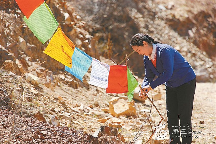 到達(dá)益西村布乃格時(shí),杜勒突然發(fā)現(xiàn)前面有十多米路段已經(jīng)被洪流沖垮了一半。“停車!停車!不能再往前開了!”坐在副駕駛座上的杜勒急忙叫住丈夫,從身上斜挎的小包里拿出五六面風(fēng)馬旗,拉開車門,幾步?jīng)_到了垮塌路段跟前。“不要再過去了,水里有石頭,一會(huì)兒被大水沖走了你就完了!”仁孜跟著跳下車,追著她喊。可是杜勒不顧丈夫的呼喊,蹲在垮塌路面的邊緣,伸出雙手將穿滿風(fēng)馬旗繩子的一端系在路邊山壁的樹枝上。她身子傾斜,右腳伸直踩在被河水沖成斜坡的路基上,左腳彎曲踏著僅剩的一點(diǎn)路面,想將繩子綁得更加牢固。而風(fēng)馬旗卻不聽使喚的在風(fēng)雨交加中搖擺不定,杜勒心中此刻只有一個(gè)信念:風(fēng)馬旗上系著的是萬千生命,無論如何也要綁牢實(shí)。“你是不是瘋了?路基都空了,要是垮下去你被大水沖走了怎么辦?”仁孜話音剛落,杜勒右腳踩著的那塊泥土突然整塊塌了下去。仁孜一把抓住她的手臂,把她拽了上來。“如果當(dāng)時(shí)是她一個(gè)人,那肯定沒命了!”仁孜把她拖回車上才發(fā)現(xiàn),杜勒卷起褲管兒的腿上布滿了青青紫紫的淤痕,雙腳顫顫巍巍,幾乎站不穩(wěn)。回到縣城后,醫(yī)生告訴杜勒短時(shí)間內(nèi)不能走路,要多休息。可是,當(dāng)天下午,杜勒趁仁孜上班,自己找了一根竹棍子拄著,又趕到下一個(gè)坍塌路段做著重復(fù)的工作。