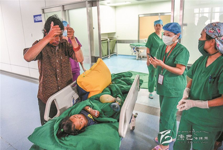8月23日,來自四川省甘孜藏族自治州甘孜縣兩歲的藏族男孩白瑪日扎在哈爾濱市第一醫院成功進行唇腭裂修復手術。白瑪日扎的父母是牧民,常年在大山上放牧,兩個月才能下山見一次孩子。白瑪日扎和爺爺生活在甘孜縣里。 8月中旬以來,哈爾濱市第一醫院攜手“中國宋慶齡基金會”、“一笑慈善基金”項目開展大型公益活動,特邀國際頜面外科、美容整形外科、麻醉科等醫療專家團,免費為貧困家庭唇腭裂兒童手術治療,并為特困家長和孩子提供免費的食宿,白瑪日扎便是免費接受救治兒童中的一員。8月23日,白瑪日扎的爺爺白瑪多吉(左)對醫護人員伸出大拇指表示感謝。
