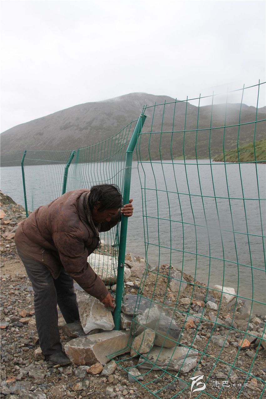 在海拔4000米的高原缺氧地區(qū),平常散步都相當(dāng)于平原地區(qū)負(fù)重30斤前行。降央生根沿著崎嶇的山路,一走就是3個多小時,出門時天氣都還是晴天,走到半路突然下起了冰雹,不一會棉衣都淋濕了,但檢查網(wǎng)圍欄的工作不能停,被石頭砸歪或動物撞壞的要壘石頭扶正、用鉗子擰緊。