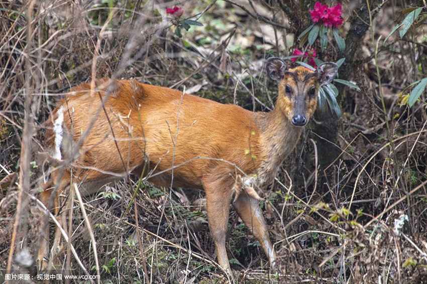 在接下來的日子里,隊員們近距離看到了水鹿、毛冠鹿、鬣羚;遠遠地看到成群的白唇鹿在山頂吃草;在一處海拔4200米的山頂草甸上,一只野豬甚至魯莽地沖向隊員們,隨后又在隊員們尖叫聲中停了下來,傻乎乎地看了一會兒后又慌忙飛奔而去。在林子里,水鹿、鬣羚的糞便出現(xiàn)的概率很高,斑羚、毛冠鹿以及麝的糞便也偶爾可見。