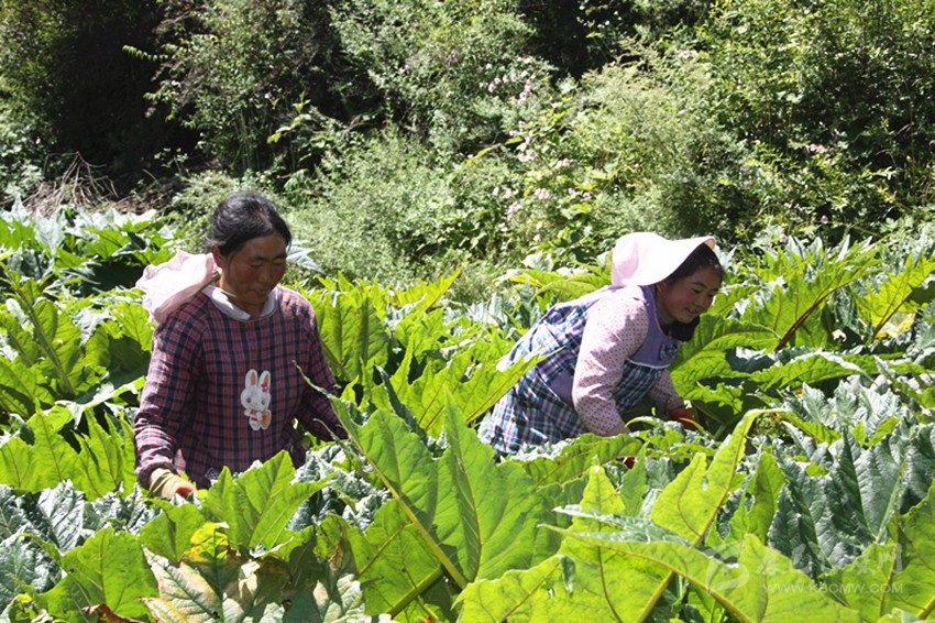 8月5日,康定市雅拉鄉雀公村,一場大雨之后,天空如洗,青山如玉。康定市雀公中藥材種植農民專業合作社的負責人梁發林和陳繼平來到藥材種植基地,查看藥材生長情況。茂密的大黃已經齊腰深了,滿目蔥翠。“這段時間雨水比較集中,雜草叢生,害蟲滋生,要增加人手和請教農科所的專家解決病蟲害的問題。”梁發林和陳繼平商量,藥材種植已經到了加強管理的關鍵時刻了,不能掉以輕心。