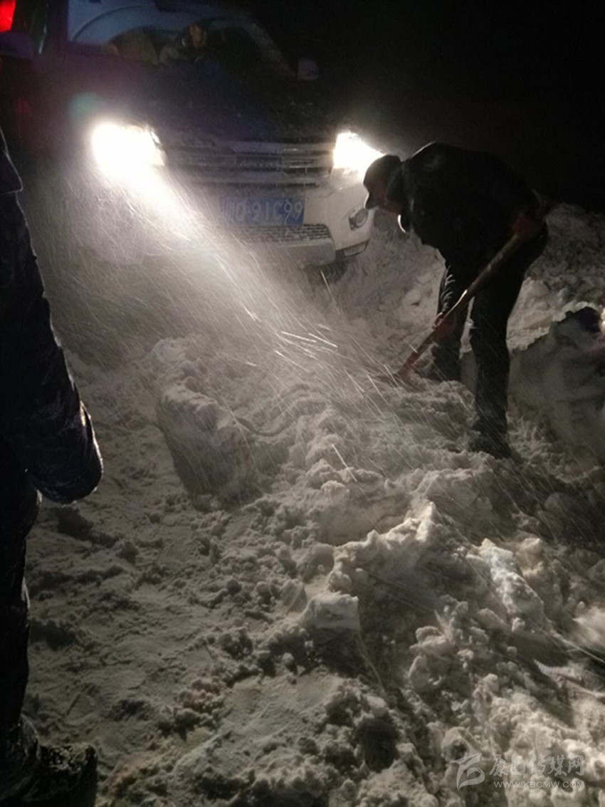 晚上10點多,第二次失敗的眾人,又開始進行第三次嘗試。“把車前的雪基本鏟出了可以供車子輪胎行駛。”劉穎說,這一次,在合力下,他的車被推了出來。并且借助大貨車壓過的車輪印,成功掉了頭。