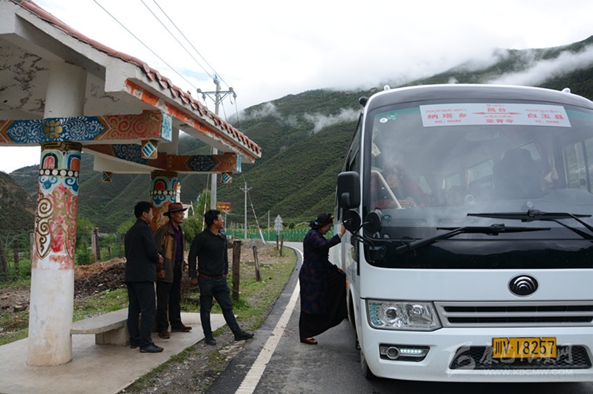 “加洛,快點喲,公交車要開了。”6月25日8時56分,在白玉縣農村公交車納塔始發點,記者看到坐上農村公交車的白玉縣納塔鄉納塔村村民俄洛招呼著鄰居加洛。