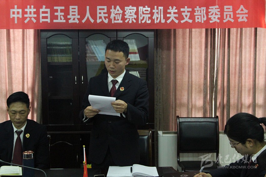 本網訊 近日,白玉縣人民檢察院黨支部召開接收預備黨員大會,討論了關于吸收秦偉同志為中共預備黨員的事宜。會議由該院黨支部書記王洪勇同志主持,除2名黨員抽調外出,該支部12名黨員、1名發展對象參加此次會議,2名黨外干部列席。