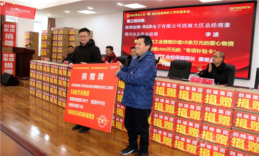 據悉,創維集團是我國研發制造消費類電視機、冰箱、洗衣機等產品的大型高科技知名品牌企業,是中國三大彩電龍頭企業之一,位列中國電子百強企業第十三位,其彩電已躋身世界十大彩電品牌。在今年的“創維公益萬里行、集善幫困暖人心”活動中,深圳創維集團、成都創維電器有限公司將為我州困難職工捐贈500臺智能電飯煲;55臺冰箱和60臺微波爐,同時,對全州有購買創維家電產品需求的困難職工,購買創維家電每件產品優惠補貼500元,全州計劃專項補貼資金1000萬元。創維集團針對專項補貼銷售的產品,承諾90日內執行價格保護,90日內遇到四川市場其他商場同型號產品有更低銷售價格,則按照差價進行補差,以確保困難職工(農民工)真正享受到專項補貼帶來的實惠。