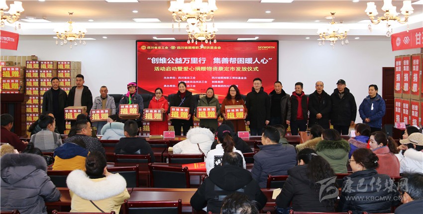 本網訊 12月10日,由四川省總工會、四川省困難職工幫扶基金會、甘孜州總工會、創維集團聯合主辦,康定市總工會、成都創維電器有限公司承辦的“創維公益萬里行、集善幫困暖人心”活動啟動暨愛心捐贈物資康定市發放儀式在康定舉行,為我州困難職工(農民工)捐贈價值50余萬元的愛心物資及價值1000萬元的“專項補貼卡”。