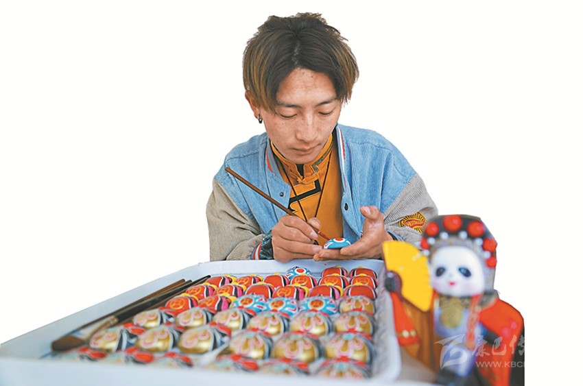 本著自主自愿的原則,教學(xué)班結(jié)束后,65名藏族青年主動(dòng)加入扶貧彩繪實(shí)訓(xùn)班,成為項(xiàng)目的第一批學(xué)員。“實(shí)訓(xùn)期間不需要交任何費(fèi)用,還包吃住。我對(duì)畫京劇臉譜很有興趣,我們第一個(gè)月學(xué)習(xí)繪畫基本功,第二個(gè)月開始,根據(jù)成品質(zhì)量,就可以計(jì)件得酬勞,學(xué)習(xí)期間我每月能掙500多元。”邛批說。