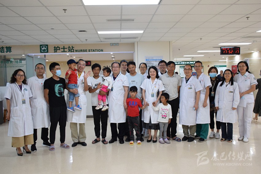 成都市第五人民醫院醫護人員與先心病小朋友、家屬合影。