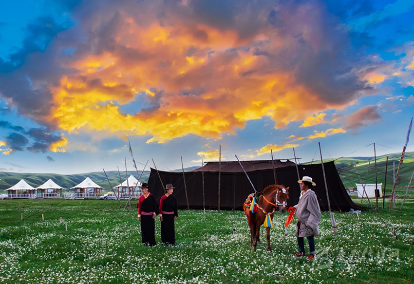 “‘綠草地’一直處于閑置狀態,牧民們守著‘聚寶盆’空嘆息!”宗塔鄉黨委書記奇美倫珠對此表示,2017年剛到任的他針對這些堵點、難題,同鄉干部、村“兩委”商定謀劃,通過探索牧區產權制度改革,盤活富足的“牧旅資源”。同年5月,宗塔鄉成立了以全鄉8個行政村為股東的爐霍縣宗塔百姓樂牧業有限責任公司,按照“黨建引領、支部帶頭、村民參與、公司經營”模式,發展包括草原觀光、帳篷餐飲、星空住宿、游牧文化體驗為一體的牧旅融合生態度假村。“我們的目標只有一個——就是以精心打造的宗塔七色草原生態度假村這把‘鑰匙’,逐步打開牧業增效、牧民增收、牧區發展、集體經濟增強的多把‘鎖’,激活鄉村振興一池春水。”