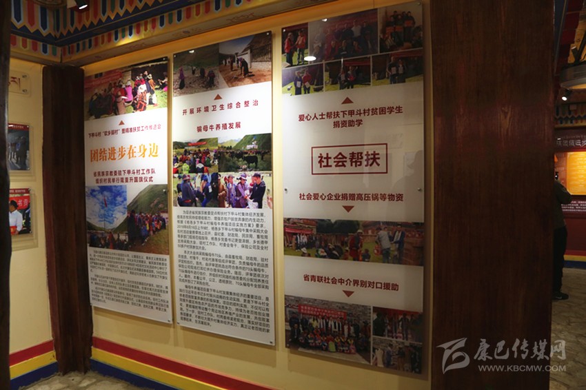 登初跳舞的民族團結文化廣場,是下甲斗村村民投工投勞所建,環顧四周,文化廣場無不彰顯著民族團結元素。“學有所教,報效祖國”“飲水思源,不忘初心”“同心合力,文化興盛”……在廣場正中的一幅畫中,數位漢族模樣的干部盤坐在地上,與周圍當地藏族群眾暢談甚歡。村支部書記那多說,這幾位都是精準扶貧期間,在村里擔任第一書記的畫像,“他們千里迢迢從省城來到下甲斗村對口支援,他們的情誼村民們感念不已,在建設廣場時,村民們一致要求畫上他們,讓大家永遠記住幫助過我們的人。”
