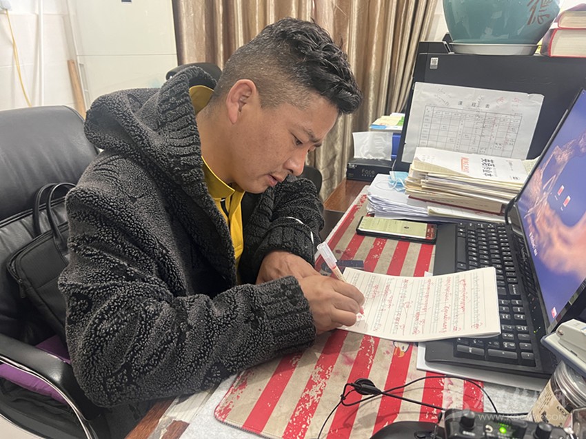 “尼瑪老師不僅對學生的學習生活關懷備至,作為任課教師,我們常常看到他在休息時間認真備課。他會聲情并茂地大聲誦讀精心準備的課件,大家都覺得很有趣,學生學習的積極性也提高了。他批改作業也非常認真,給每一位同學寫的評語都用心用情。他是真的是用全部身心來對待工作,不愧是一名優秀的老師。”采訪過程中,筆者偶遇了援建教師廖俊希,談起對章拉尼瑪的印象,廖俊希的評價細致而中肯。