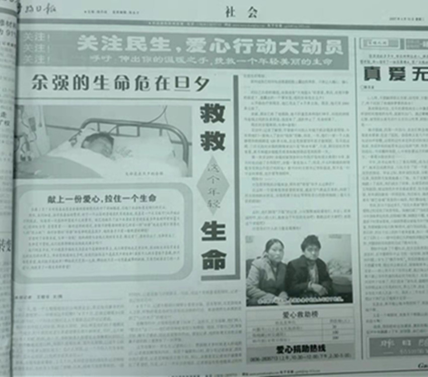 那時(shí),當(dāng)記者將能走訪的部門都走訪完,將能為余強(qiáng)爭取的資金都爭取后,深感愧對余強(qiáng)一家。他們將所有的希望都寄托給記者,寄托給報(bào)社。可是,記者和報(bào)社卻無法為他們帶來想要的希望。