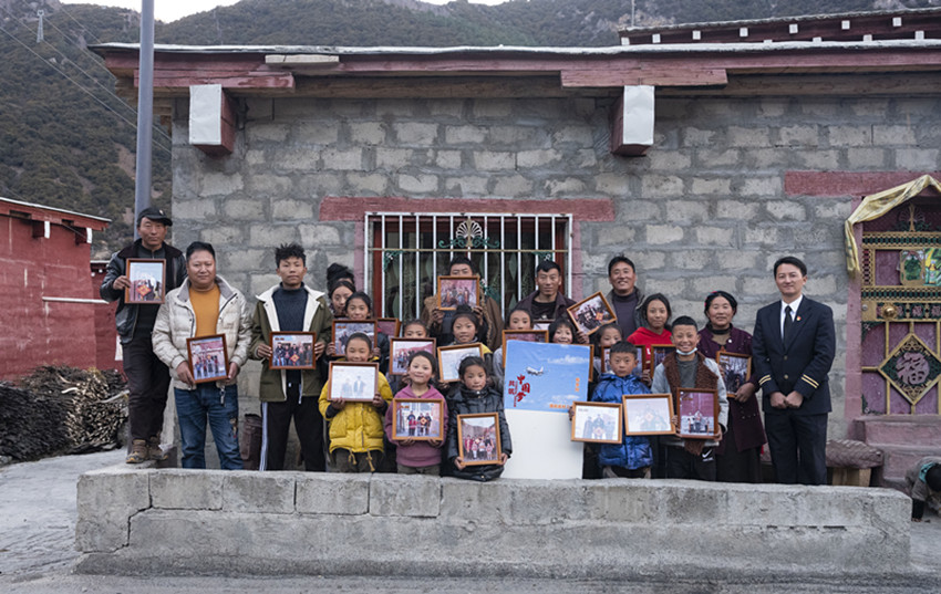 2023年2月1日一大早,國(guó)航西南分公司派駐巴塘縣松多鄉(xiāng)龍巴村的駐村隊(duì)員黃海穿著厚厚的防寒服,戴好頭盔,騎著摩托車,和他的隊(duì)友騎行15公里山路,經(jīng)歷一路風(fēng)塵顛簸,于上午十點(diǎn)趕到松多鄉(xiāng)最偏遠(yuǎn)的下莫西村村民阿扎的家中,“這次我和隊(duì)友要給下莫西村的全體村民拍攝全家福照片”。此時(shí),阿扎全家早已經(jīng)備好了熱奶茶,穿上了節(jié)日盛裝,在家里翹首等待。