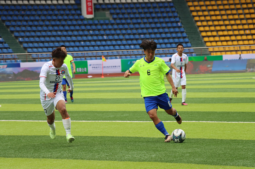 上午9時30分,第一場由B組的云南迪慶隊對陣青海海西隊。比賽伊始,雙方隊員來回爭球,不斷切換進攻與防守陣型,比賽至第47分鐘,云南迪慶隊11號隊員破門進球,上半場以1:0結束比賽。比賽下半場,雙方隊員你追我趕,不斷爭搶控球權。比賽至69分鐘,云南迪慶隊再次進球,將比分擴大到2:0。青海海西迅速調整狀態并發起強勢進攻,試圖扳平比分,不斷嘗試進入云南迪慶隊的禁區,給對方帶來了巨大的壓力。比賽至86分鐘,青海海西22號隊員獲得一次點球機會,最終以2:1結束比賽。