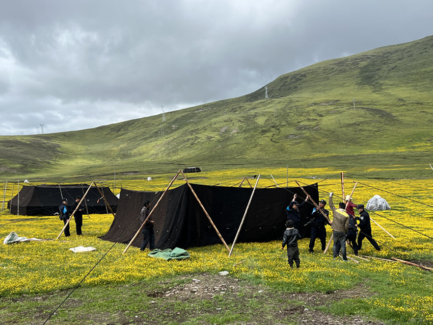 返程途中,高照洪和同事們還遇見安孜鄉(xiāng)門馬一、二村牧民正在冒雨搭建夏季牧場的黑帳篷,隨即下車幫助牧民一同搭建,并向牧民群眾宣講道路交通安全、森林草原防滅火、防汛期防護、嚴(yán)防“偷牛盜馬”及保護個人財產(chǎn)等方面的知識。