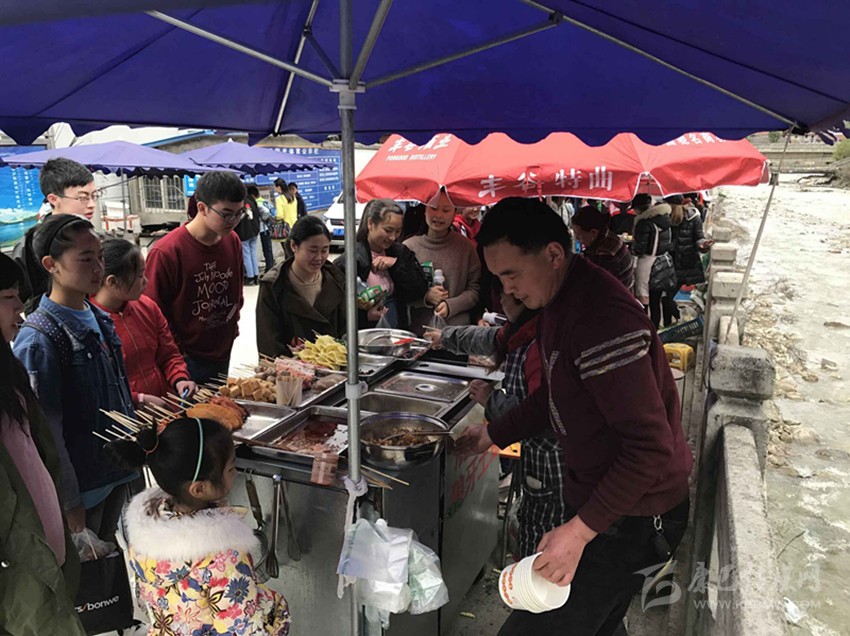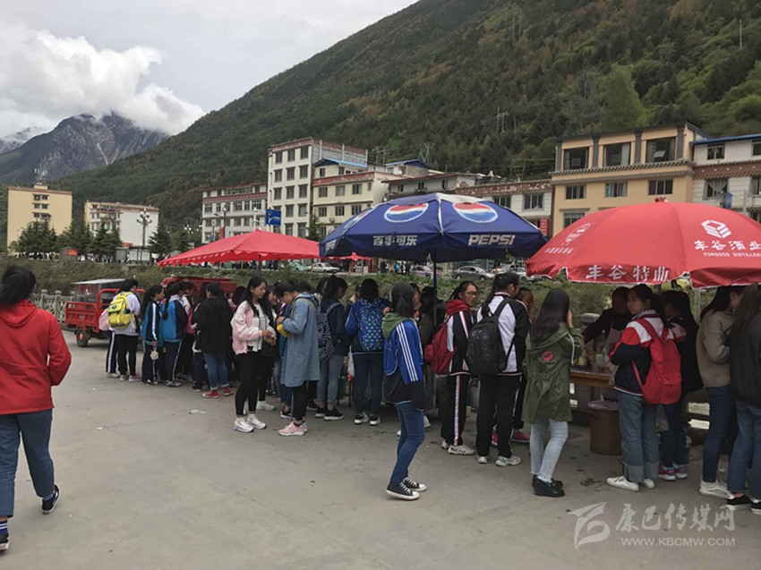 那么真實情況到底如何呢?7日,記者專門來到康定中學走訪調查。記者搭乘出租車前往學校,途中司機卻回應“康中校門口那一段全是賣炸洋芋、炸雞腿的攤攤,車子根本開不過去,只能提前下車。”當記者步行過橋到達校門口路段時,雜亂無序而又異常喧鬧的場面立刻映入眼簾。約摸十來家燒烤油炸“流動攤點”上,商販們手中的烤具上下翻飛,幾十名身著“康定中學”校服的學生駐足其間,從校門出入的車輛不斷鳴笛避讓。烤面筋、炸土豆、烤雞腿,濃濃的油煙、各種調料混合的氣味、滋滋的油炸聲……儼然一副“美食街”的火爆景象。