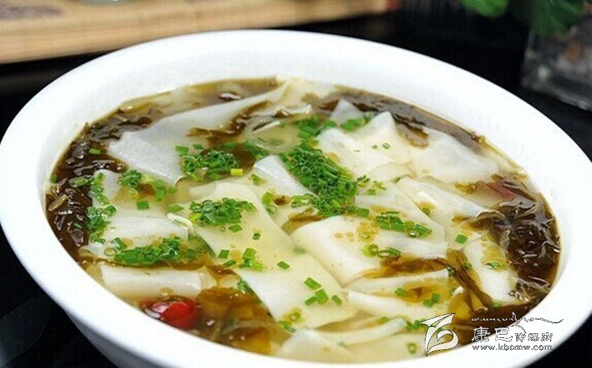 酸菜面塊這是一種特色很濃的藏族傳統晚餐。其主要原料是酸菜,酸菜的制作方法很簡單:把菜葉煮到快熟時,取出冷卻,然后裝入壇子或木桶里,密封好放在陰涼處,一星期左右就成了。