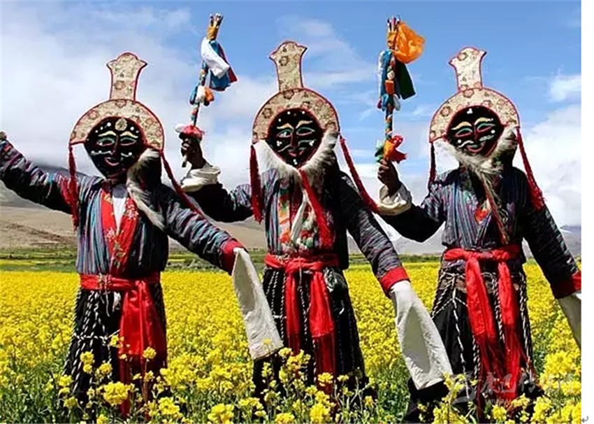 葩,意為面具。是藏族同胞在節(jié)日慶典期間,跳舞時戴在頭上的裝飾品,面具有各種不同形狀、不同色彩和表現(xiàn)風(fēng)格。根據(jù)制作材料的不同可分為泥料、布料、皮料等不同種類的面具。頭像面具初始于十三世紀(jì)末, 除表現(xiàn)人物形象的面具以外,與此同時表現(xiàn)飛禽走獸形象之類的面具亦隨之問世。