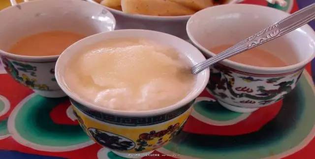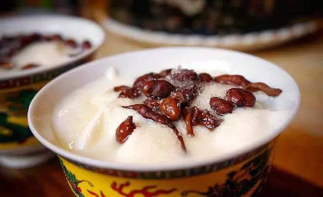 吃完酥油果子,再來一碗人參果藏式酸奶吧。酸奶是牦牛奶發酵而成,而人參果則是高原的寶貝之一,營養價值維生素含量極高。人生果是甜甜的,酸奶是極酸的。搭配在一起是清爽又可口的下午茶不二選擇。