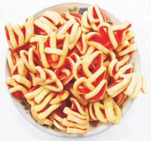 酥油果子也被成為藏式麻花,是甘孜藏民家中茶幾上必有的待客零食。酥油果子的原料是面粉和酥油。在和面的過程中加入酥油,然后放入清油中炸成金黃色。香酥可口、有甜味的、咸味的...過年、結婚、祭祀、平時食用都不可少。
