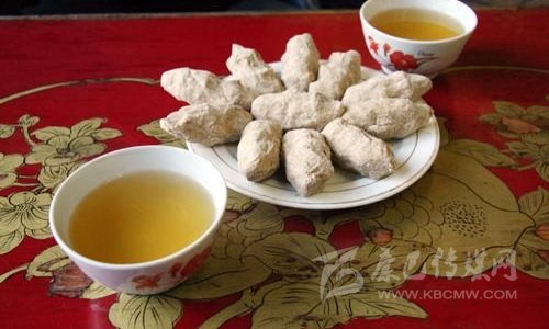 藏族人一日三餐都缺不了糌粑。糌粑就是用青稞制成的炒面。它是將青稞麥炒熟、磨細、不經過篩濾而制成的,與我國北方制作的炒面有點相似,區別是北方的炒面是先磨后炒,而糌粑卻是先炒后磨,而且是不除皮的。