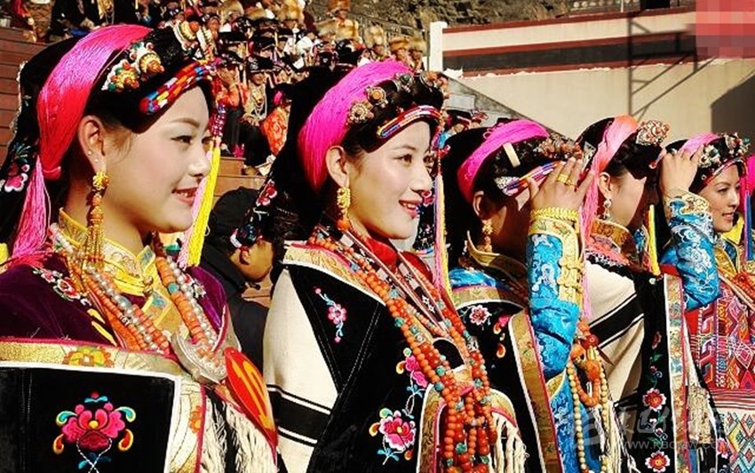 嘉絨藏族服飾是整個藏族服飾中頗具代表性的,服飾多是用氆氌、呢子、毛料等上品料制作,上衣外套分大領和小領,也有長裝和短裝。外套的衣領、袖口等處鑲有水獺皮、豹皮。領口、袖口均用金絲緞鑲邊。著裝一般分為盛裝和便裝,用于不同的季節的場合。