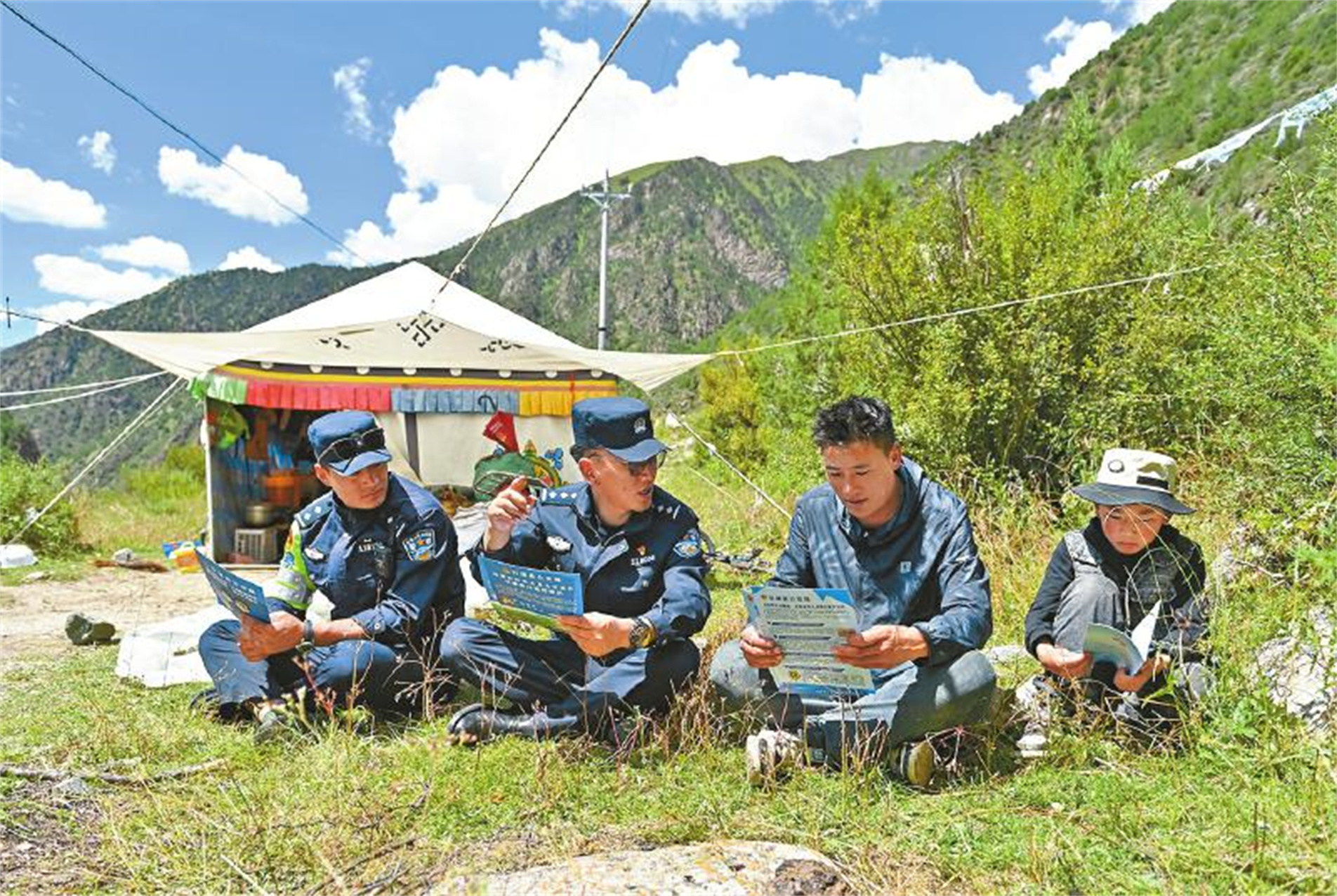 “甲日村有幾戶牧民是前幾天剛遷徙過來的,我們去給他們進行一次法治宣講,也去了解下他們有沒有辦理身份證、戶口的需求。他們住在河那邊,出行也不方便?!毖采饺蝿战Y束后,趁著大家吃干糧休整的時間,登真扎巴對大家說。