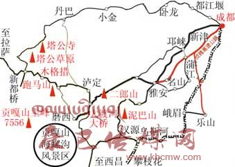 成都 至 雅安 140公里 二郎山隧道全長 4公里 二郎山隧道西口 至 甘谷地 16公里 甘谷地 至 磨西鎮 38公里 磨西鎮 至 一號營地 15公里 一號營地 至 二號營地 8公里 二號營地 至 三號營地 7.5公里 三號營地 至 觀景臺 4.5公里 甘谷地 至 瀘定 13公里 磨西 至 康定(經雅家埂) 76公里