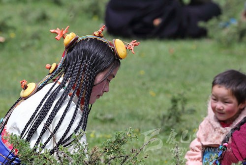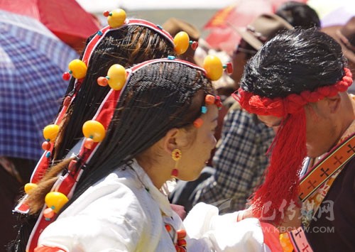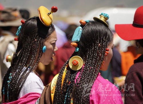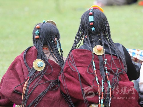 其實藏族人的審美很多同漢族不一樣,參加一場活動她們會在頭發上占去大量的時間,編成非常多的辮子。