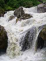 溝外交通與燕子溝大致相同,從南門關溝至兩河口14.5千米,在這里分做兩條路,一條往西南去牛園子和冰川,一條往西北去蟲草棚子(二號營地)和冰川。這里沒有食宿,道路艱險,馬不能通行,需要當地向導。